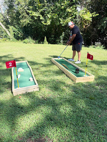 Putters, Balls, Rules/Instructions signage, Scorecards, and Pencils